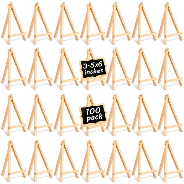 100 Pieces Mini Wood Easel Stands Small Wooden Canvas Easels Display Art Craft Tripod Painting Tabletop Holder for Artist Crafts, Business Cards, Photos, Gift(6 Inch)