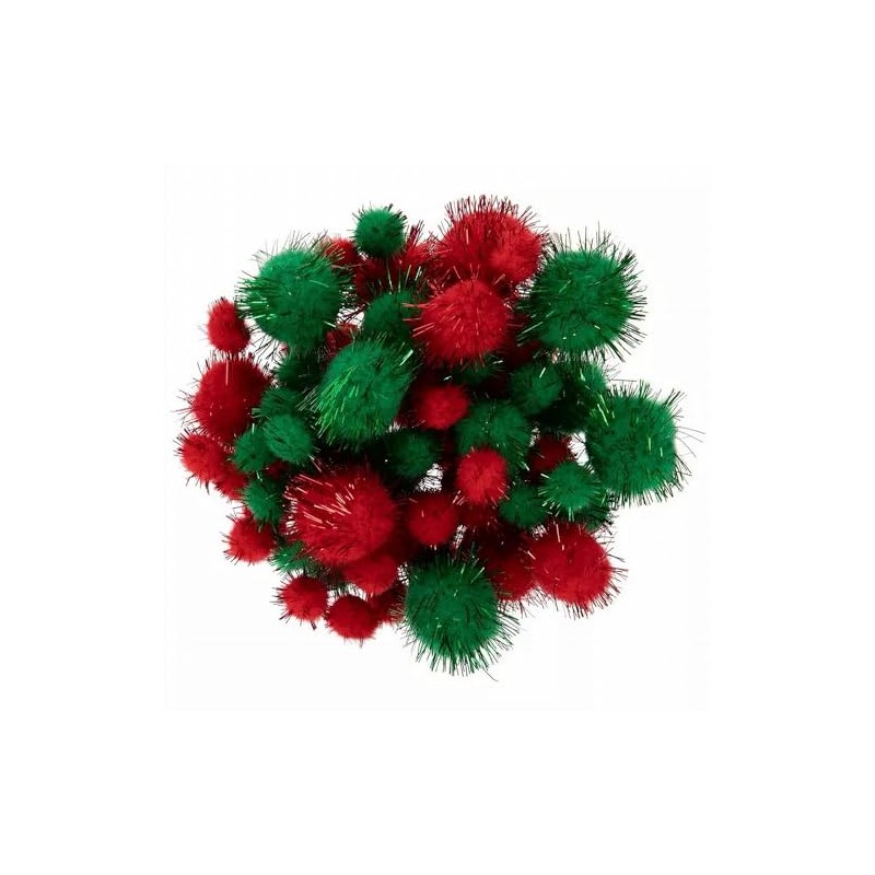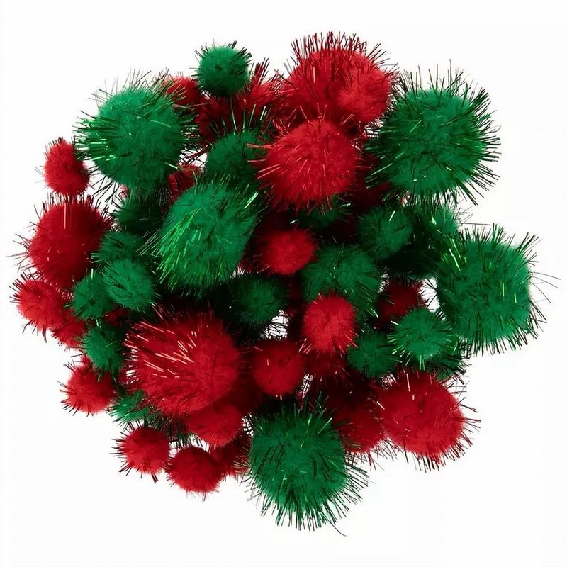 100 Pieces Red and Green Tinsel Christmas Pompoms for Holiday Craft Art Supply