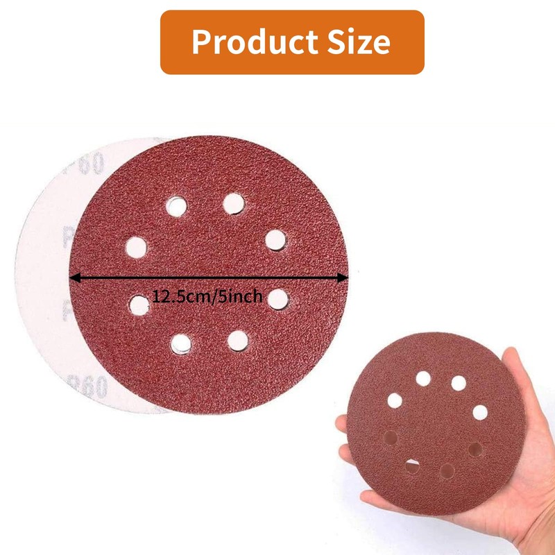 - Package Content 100 x Sanding Discs 125mm (40/60/80/120/180//240/320/400/600/800 grit, 10pcs each type)