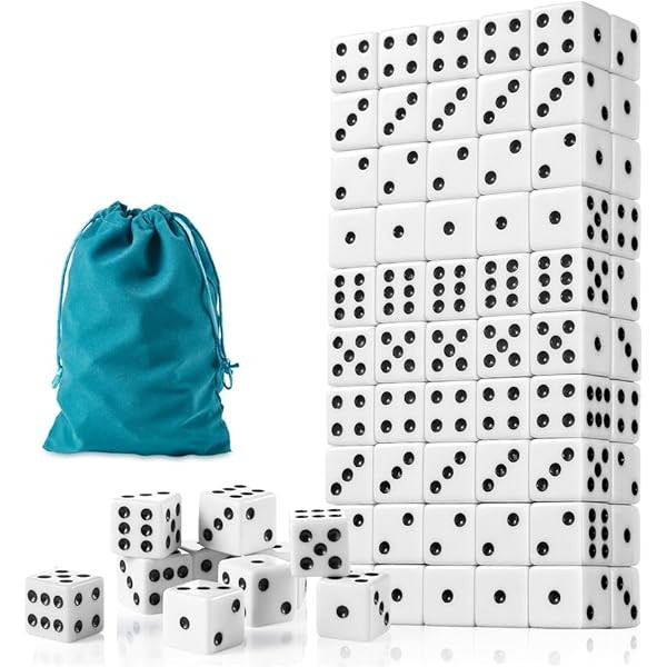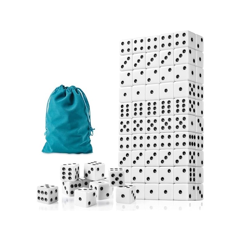 100 Pieces White Dice Set, 16MM Standard Game Dices, Opaque Six-Sided Dice with Pouch, Black Dot Bulk White Dice for Group Event, Board Games, Classroom Math
