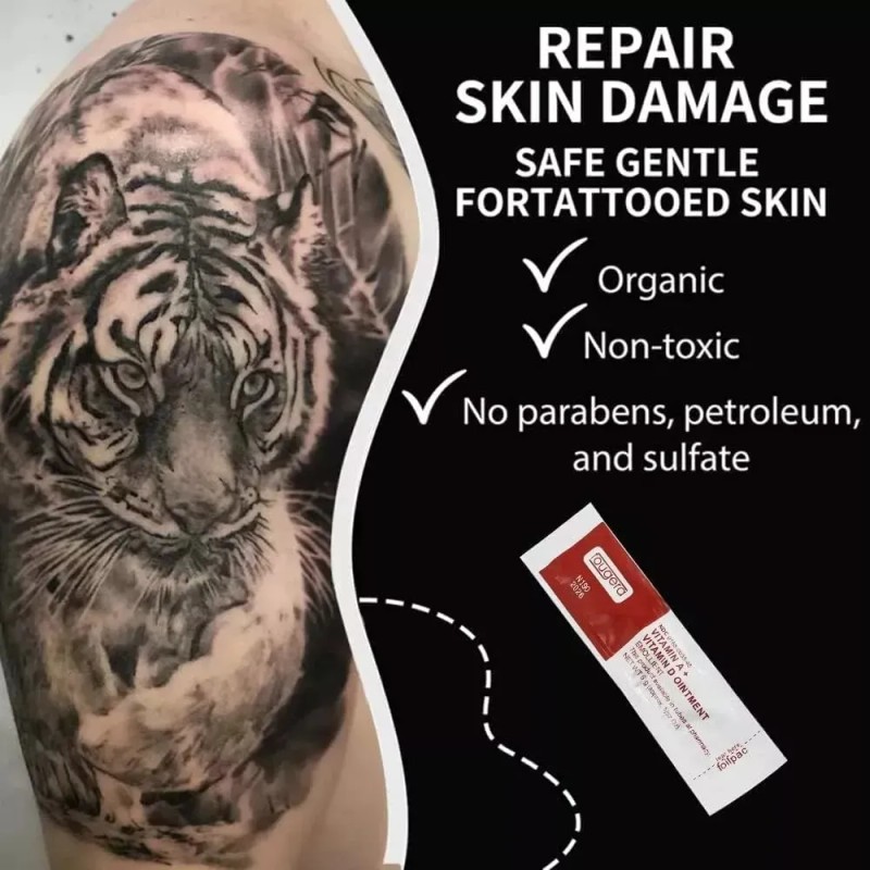 ¡Dale a tus tatuajes el trato que merecen con la Crema Para Tatuaje Vitamina A y D Fougera! 💧 Esta crema es el aliado perfecto para todo amante del arte corporal, asegurando que cada diseño en tu piel brille con intensidad y se mantenga vibrante.