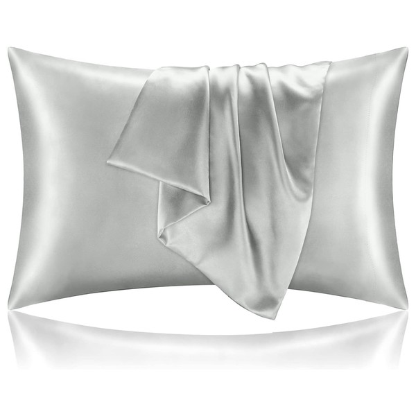 100% Polyester Pillowcase for Hair and Skin - Allergen Resistant Dual Sides, 600 Thread Count Silk Bed Pillow Cases, 2pcs, Queen Size, Gray