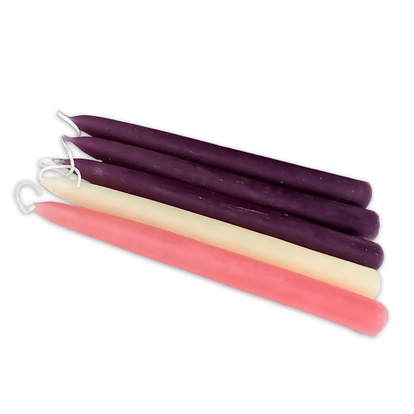 100% Pure Beeswax Taper Candles - All-Natural Handmade Decorative & Dipped Smokeless Unscented Candles for Christmas, Advent, and Hanukkah, Advent Set, 8.5 Inches, 5 Candle Set, by BeeTheLight