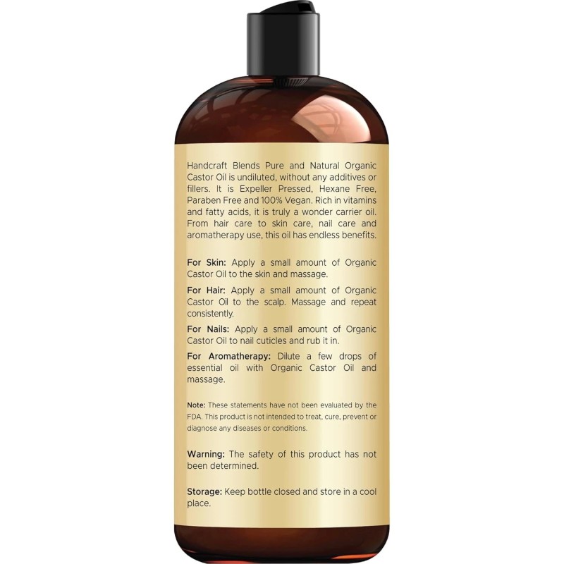 100% Pure Handcraft Blends Organic Castor Oil - 16 Fl Oz - 100% Pure and Natural