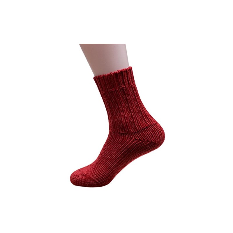 100% Pure Wool Chunky Knit Ankle Sock (2. UK 5-6 / EU 38-39, 5. Dark Red)