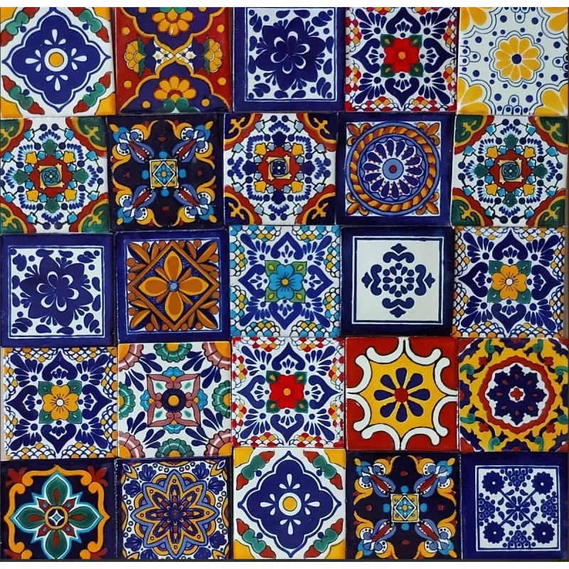 100 Pzas Azulejo Talavera 10x10cm Diferentes Colores Confeti