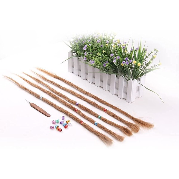 100% Real Hair Dreadlock Extensions 20 Inch 5 Strands/Pack Handmade Crochet Dreadlocks Extension for Women / Men Dreadlocks Hair (Light Brown Colour)