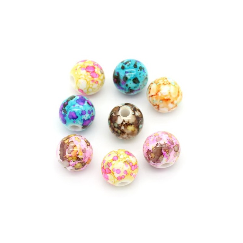 - 100 Multicolor Watercolor Splattered Acrylic Beads Per Package