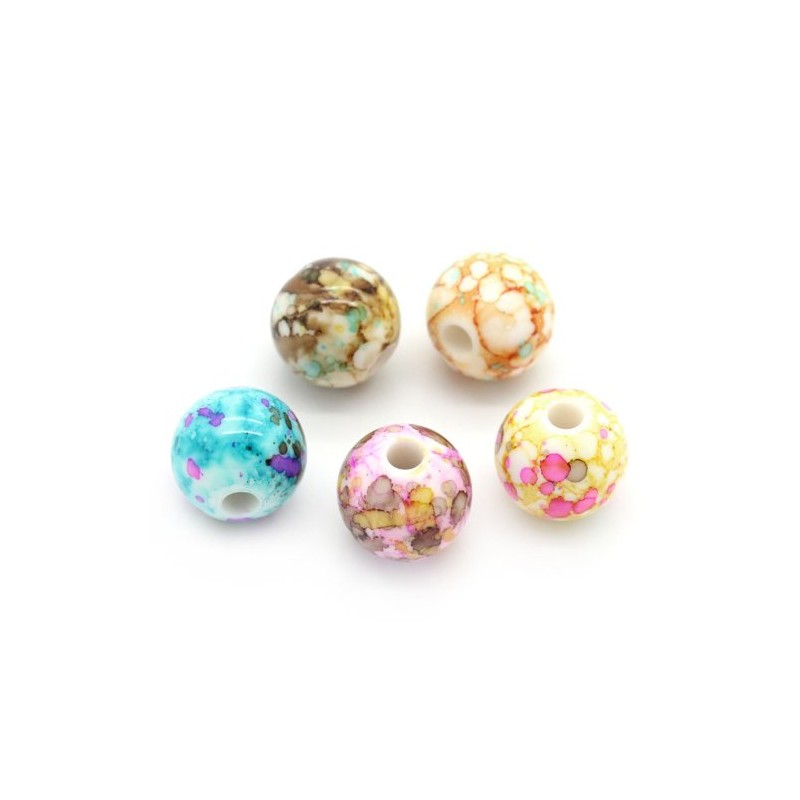 100 Round Acrylic Beads in Splatter Patterns 14mm Multicolor Beads with 3.6mm Hole