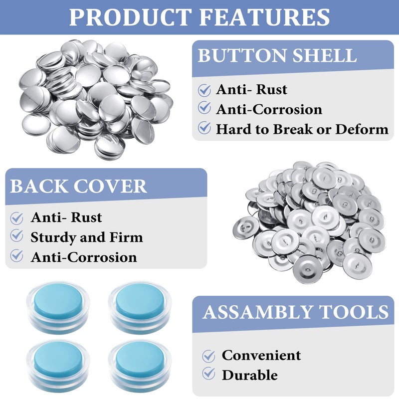 - Enough to Use: you will receive 100 sets of cover buttons kits, including 100 pieces of cover buttons and 100 pieces of wire backs, equipped with 2 sets of tools, abundant in quantity, enough to use and replace, easy to meet your daily needs