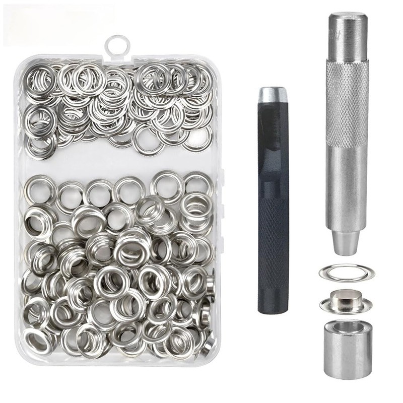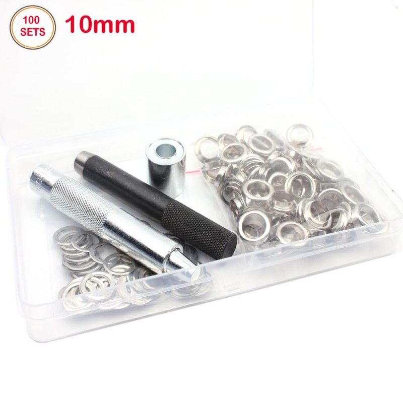 100 Sets Eyelet Tool Kit 10mm Metal Eyelets with 3 Mounting and Fixing Tools ...