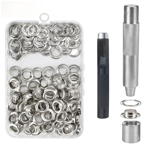 1. Grommet Kit for Tarpaulin, Fabric, Curtains and Crafts, Tarp Repair Kit, Grommet Kit, 100 Sets, Grommets 10mm and Punch Hole Tool and Fixing Tool.