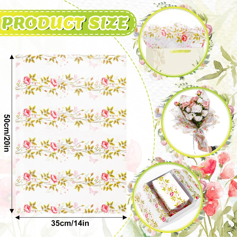 100 Sheets Floral Tissue Paper Rose Tissue Paper Floral Wrapping Paper Elegant Gift Wrap Greenery Blossom Decorative Tissue for Birthday,Wedding,20"×14"