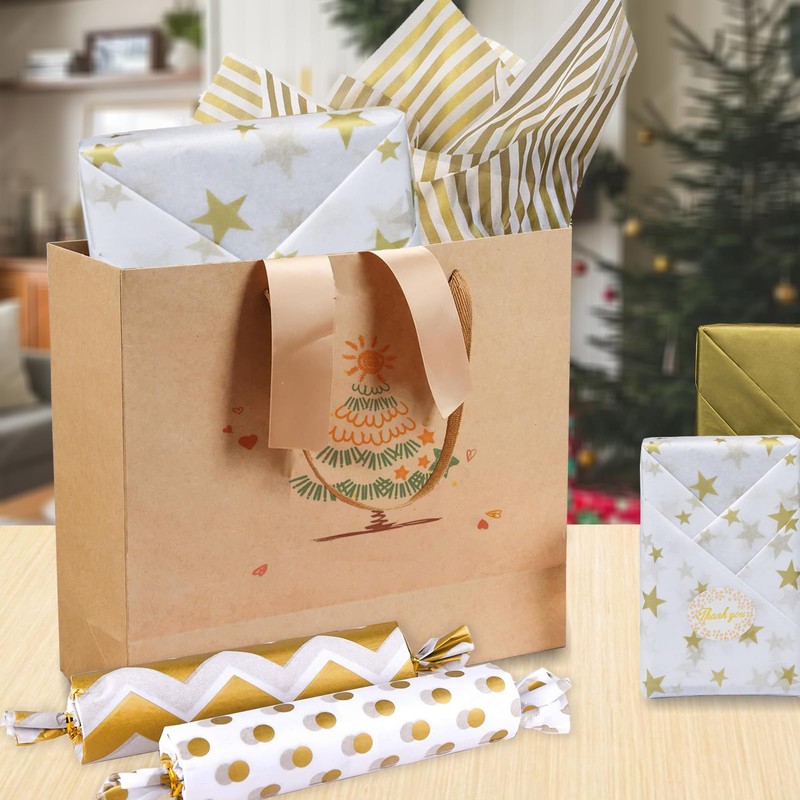 - Eye-Catching Packing - Gold tissue papers give off a metallic sheen, adding a touch of luxury and elegance to your gift. Whether it's for a birthday, Christmas or a wedding, these tissue papers will add a unique charm to your gift