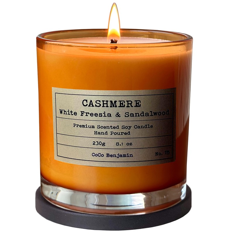 100% Soy, Highly Scented, Hand Poured Soy Candle (Cashmere, White Freesia, Sandalwood)