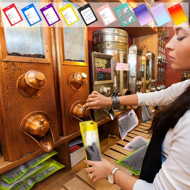 - Material: the reusable aluminum bags with high quality metallized film, environmentally friendly. The transparent side makes it easy to see the product without opening the bag. This bag is resealable and can be reused after easy washing, which is more cost-effective.