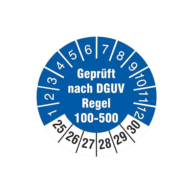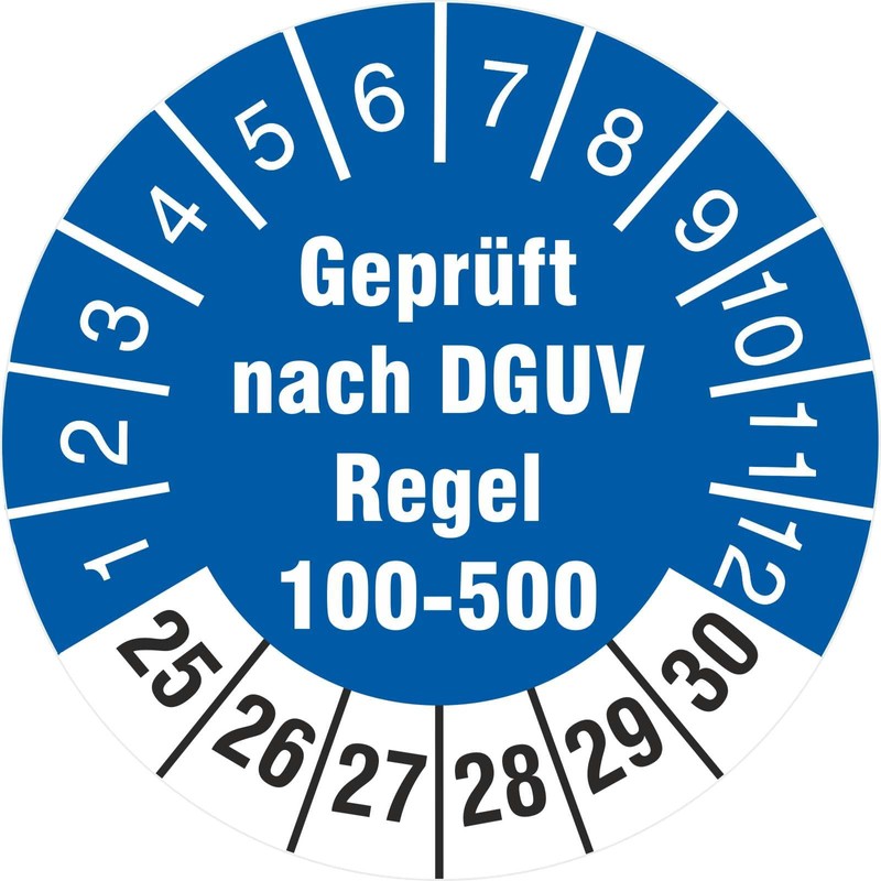 100 Test Labels 30 mm Tested According to DGUV Rule 100-500 Test Badges 2025-30