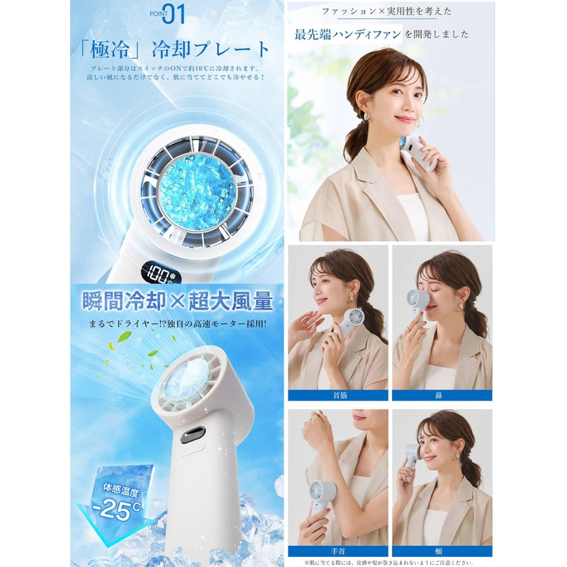 - 【 満員電車でも、ひんやり静かに涼める冷却プレート搭載】風を送るだけじゃない!背面の冷却プレートを首元や手のひらに当てれば、通勤ラッシュの車内でも瞬時にクールダウン。目立たず静かに使えるから、周囲の目も気になりません。