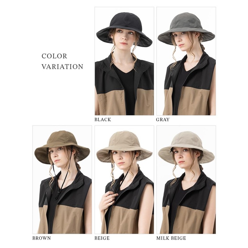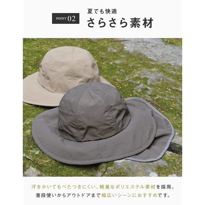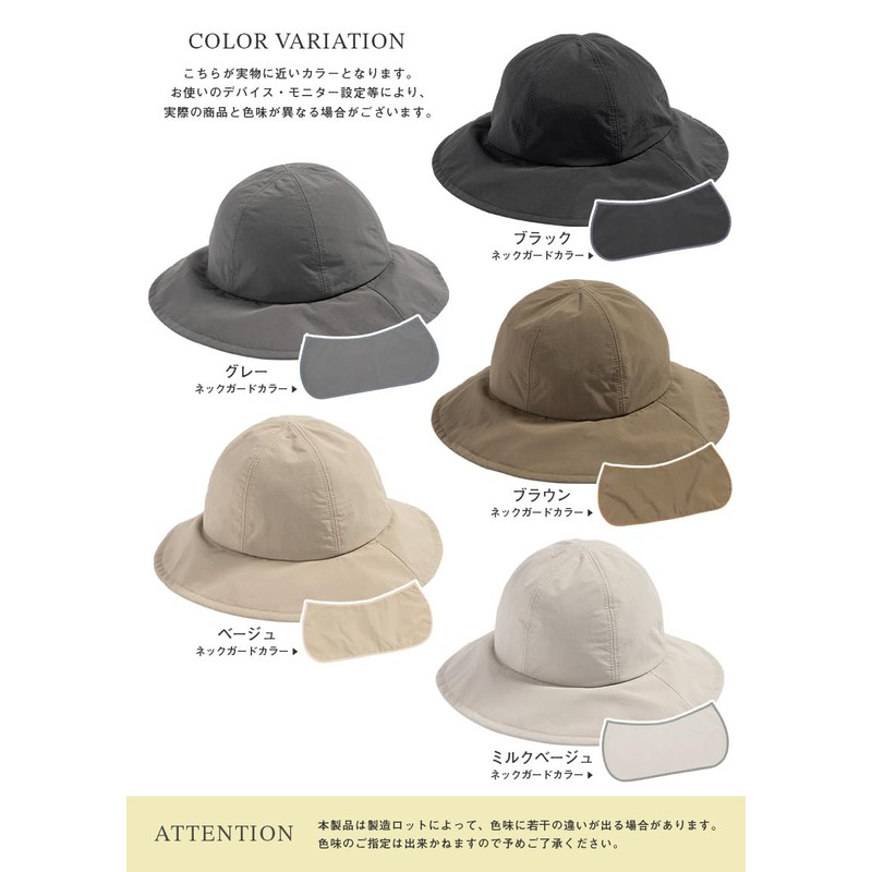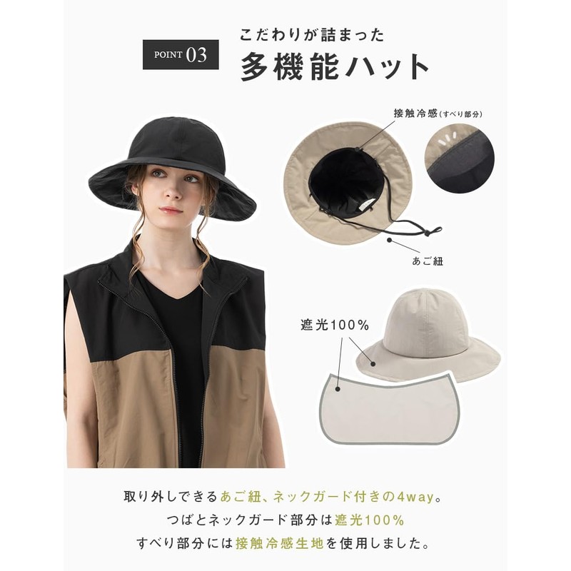 - 【あご紐・ネックガード付き】風が強い日も安心のあご紐付き!取り外し可能なので、オシャレをしたい時やアクティブに動きたい時など、シーンによって使い分けができます。遮光100%のネックガードで首後ろの日除けも可能です。