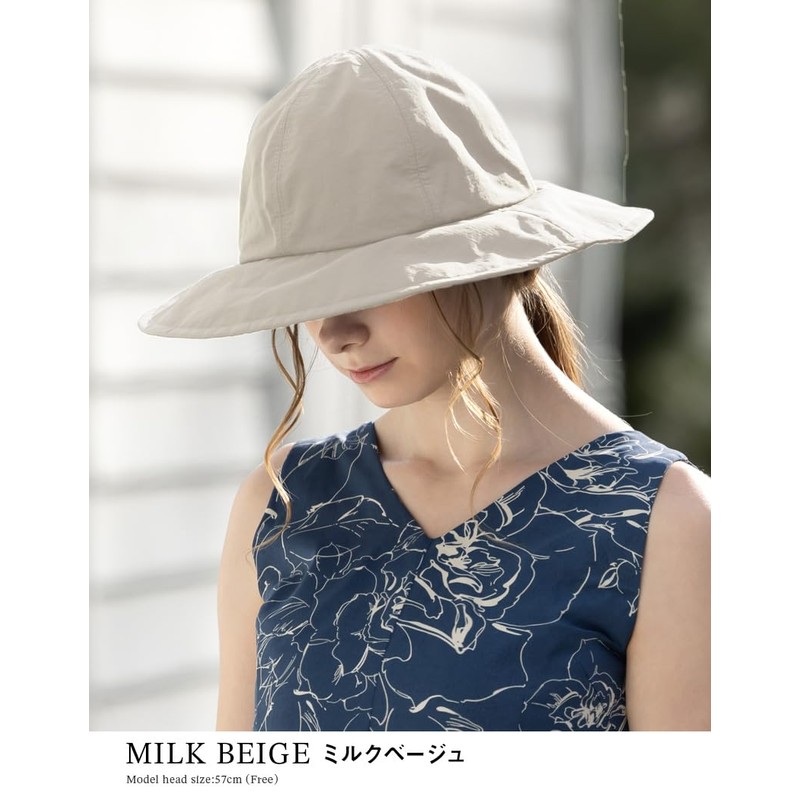 [Loo&c] ルーアンドシー 帽子 レディース つば広 ハット ネックガード付き 大きいサイズ アクティブ ベルハット 遮光100% 紫外線対策 uvカット あご紐付き オールシーズン サファリハット サイズ調整可能【L(58-61cm)-ミルクベージュ】