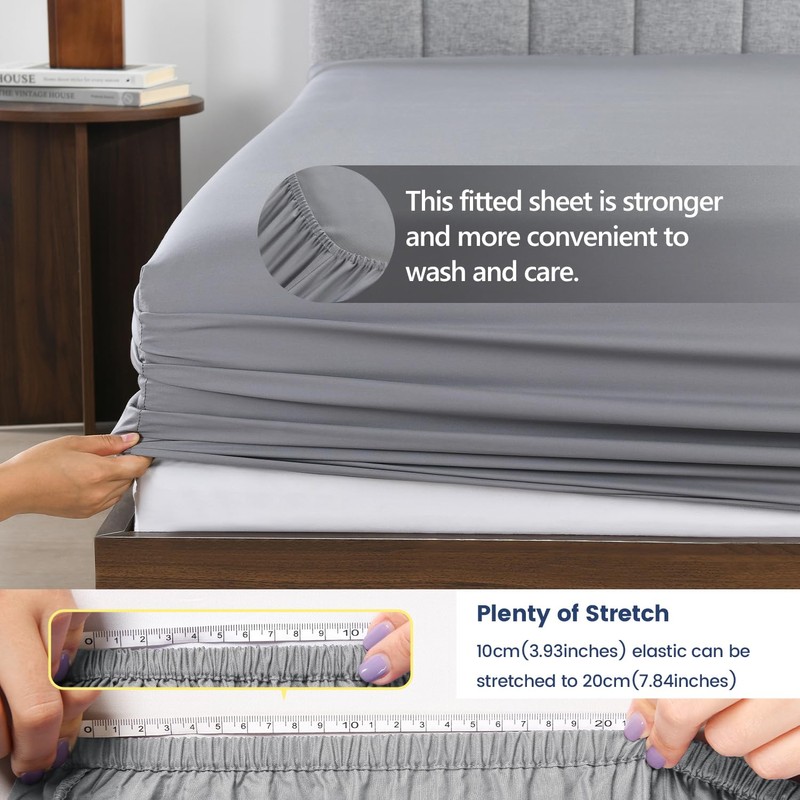 - Deep Pocket Fitted Sheets - 360° all around high-stretch elastic fits mattresses 8 to 16 Inches. Our cooling fitted sheet is uniquely designed to fit easily, especially deeper in the corners to ensure stay on bed tightly. No more waking up in the middle of the night to adjust your sheets, giving you a perfectly restful night's sleep!