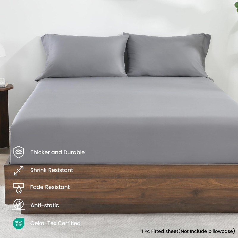 - Package Include: 1 piece 100% Viscose Derived From Bamboo fitted sheet full size measures 54"x75"+16", Silver Grey