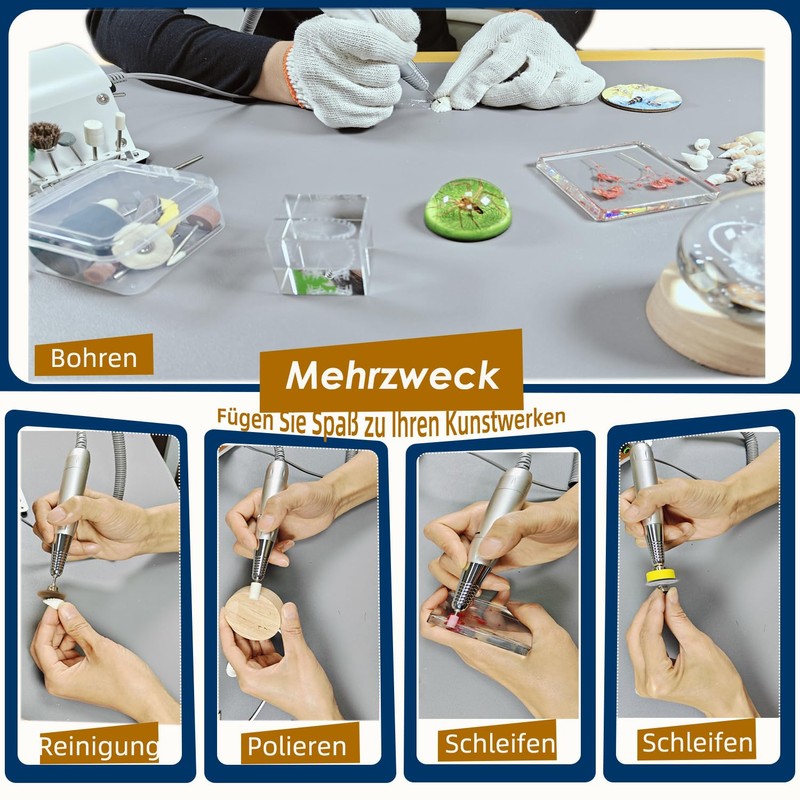 • Multifunctional tool: suitable for cutting, grinding, polishing, shaping, drilling, deburring, cleaning, engraving, cutting and so on. It also allows you to complete a variety of craft projects efficiently. Ideal for craft projects, DIY, workshops, jewellery making, model making, woodworking and metalworking or simply for hobbies. In addition, it offers endless uses for all your creations.