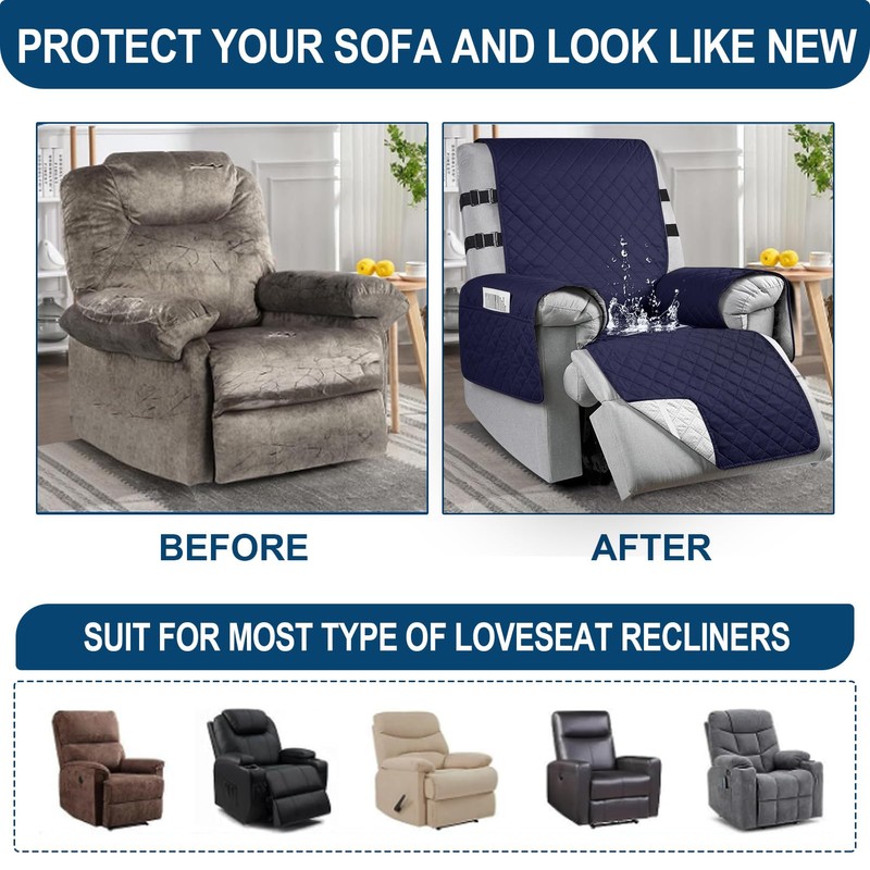 - 100% waterproof fabric: We waterproof chair protectors for TV chairs are quilted from 5 layers of durable fabric to undergo a waterproof treatment by applying a waterproof layer to the top to ensure that our recliner cover offers 100% guaranteed waterproof and leak-proof properties.