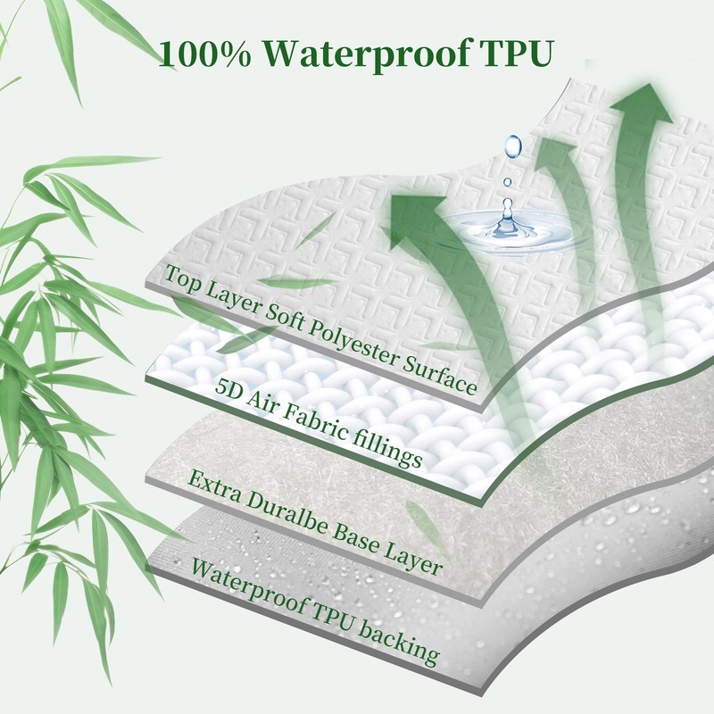 - SLEEP IN SILENCE: The filling of MERITLIFE Waterproof Mattress Protector is 5D Air Fabric with ultra-fine ventilation holes, which only allows air flow, but quickly locks in invasive moisture and accelerates the moisture evaporation. There won’t be any crinkling or plastic sound when you move. You and your family will enjoy a fresh and silent sleeping environment!