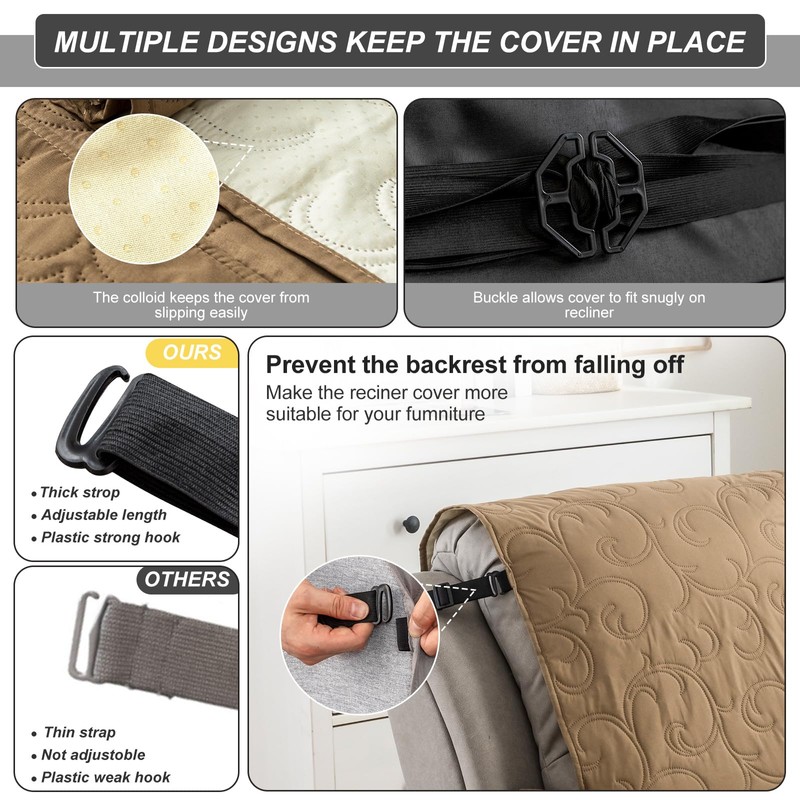 - 【High-Stretch Materia】: Our recliner chair covers has luxury, smooth and durable feel, and the reclining chair slide cover is designed with anti-slip belt, which is stronger than the ordinary reclining chair slide cover. The recliner chair cover is suitable for most sofa, and the high-stretch fabric can fit your sofa very well and make your sofa look more fresh.