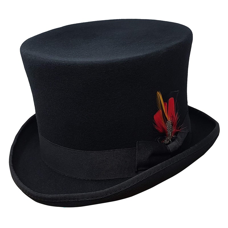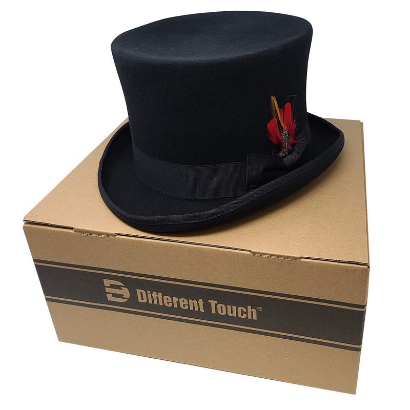 Different Touch 100% Wool Felt Top Hat Victorian Style Mad Hatter Tall Gentlemen Magic Hats you will love at great low prices. This Victorian-style wool felt top hat is a fantastic gift for your legendary offspring. It was quite durable and long-lasting due to its high-quality materials. Its distinctive and stylish design is enhanced by the magic caps with a shoelace. So, you must feel like a magician when you wear this hat. It's appropriate for Halloween, Father's Day, Christmas, New Year's Eve, and other special occasions. It's ideal for a Steampunk setting. This wonderful hat might be a keepsake for your youngster. 100% Pure Wool Felt, Satin Lined, Grosgrain Band Measurement: Small = 55cm - 6 7/8 | Medium = 57cm - 7 1/8 | Large = 59cm - 7 3/8 , X-Large = 61cm - 7 1/2 , 2X-Large = 63cm -7 5/8 6.5" Tall Crown l, 2" Brim. Item #H17