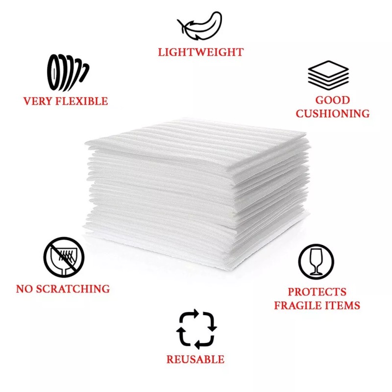 100 Wrap Foam Sheets 12"X12"x1/16" + Free Fragile Stickers
