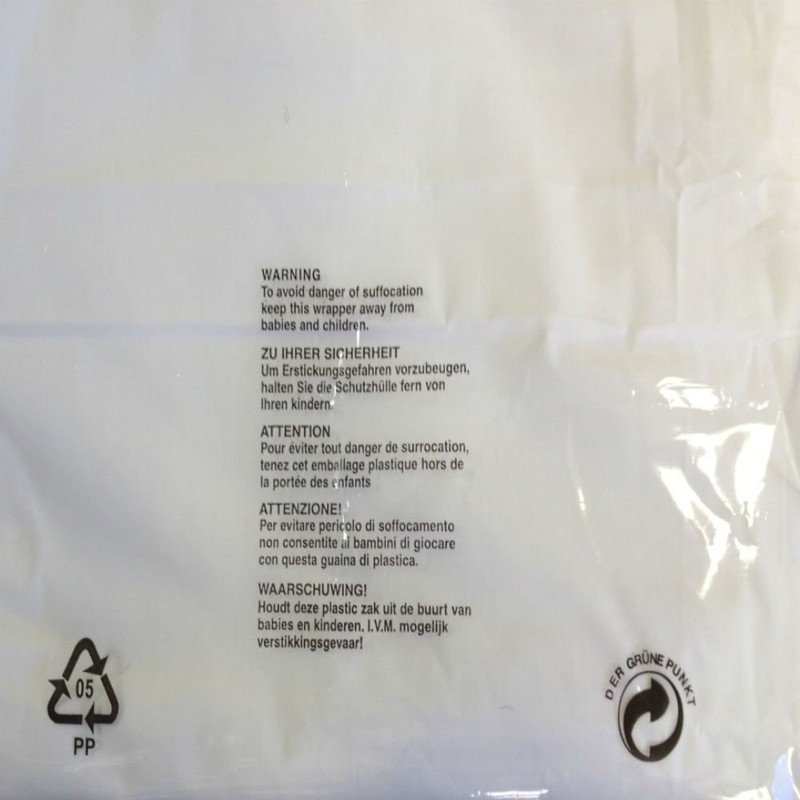 Clear clothing bags are ideal for gift wrapping or displaying your garments and giving a more professional look to your wrapped. Our bags are made from a 40 micron polypropylene and have a 50mm self-closing strip making packing quick and easy. All bags come with safety warnings in 5 languages and have air release holes. We have the bags in different sizes, and quantities (multipacks) also available to be customized to your liking.