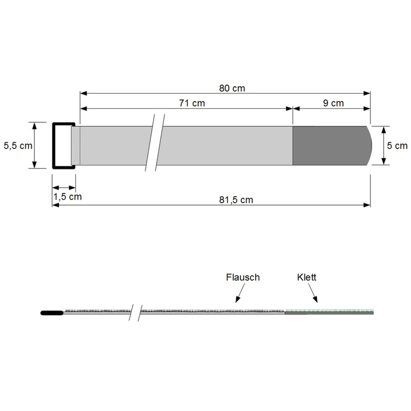 - Dark grey fleece band with black Velcro flap - with metal eyelet