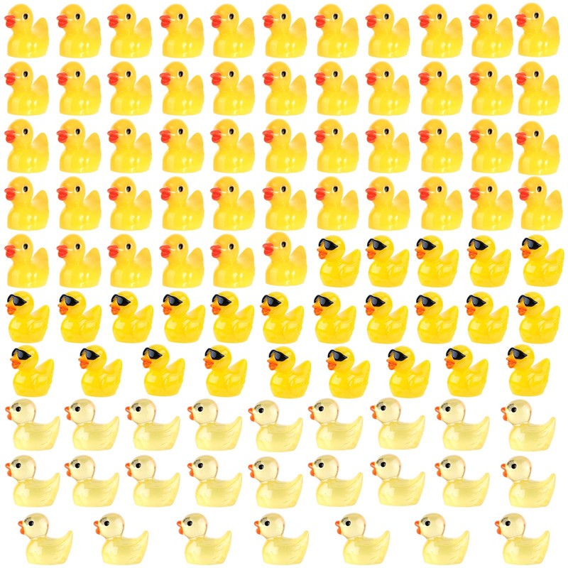 - Package contents: you will receive 100 mini ducks, including 50 yellow resin ducks, 25 mini resin ducks with sunglasses and 25 fluorescent yellow ducks. These small ducks look vibrant and sweet. A sufficient quantity will meet your requirements.