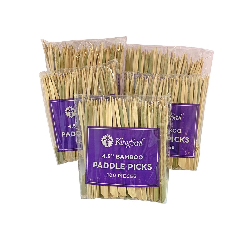 KingSeal Natural Green Bamboo Wood Paddle Picks, Skewers for Appetizers and Cocktails, 4.5 Inches. 10 packs of 100 picks per pack.