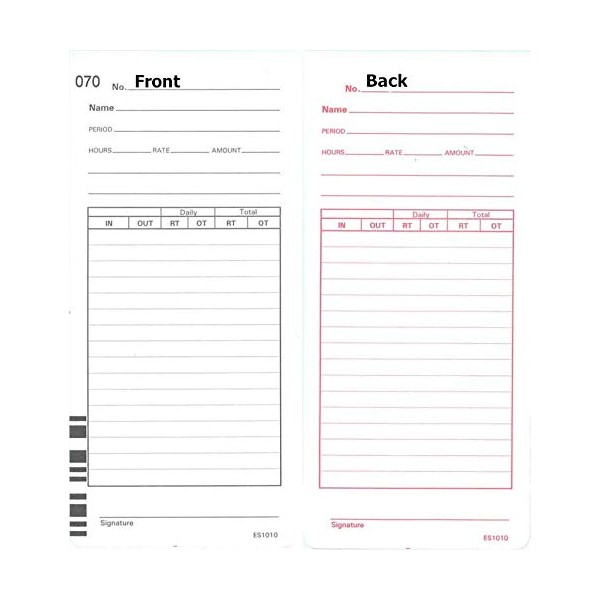 • Premium quality ES1010 time cards for Acroprint ES1000 totalizing payroll recorder