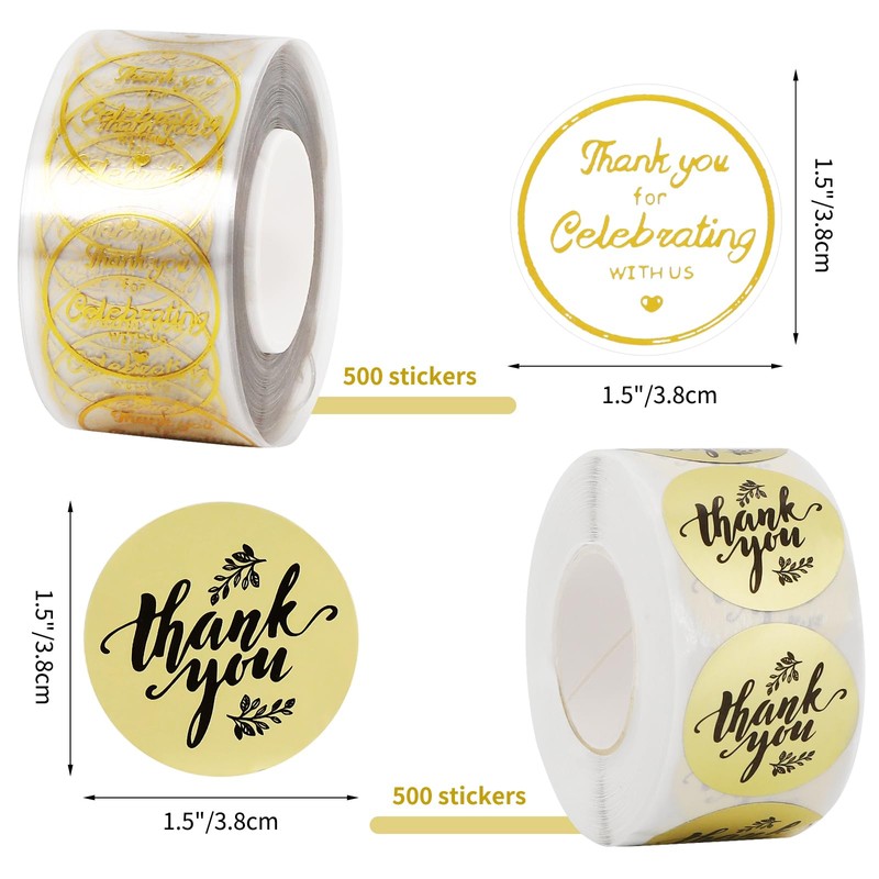 - 【Package Contents】Includes 2 rolls(500 pieces in each roll)1-inch round cute thank you stickers—perfect for thank-you cards, party favors, packaging, holiday gifts, or school projects. Ideal thank you stickers for party favors and envelopes.