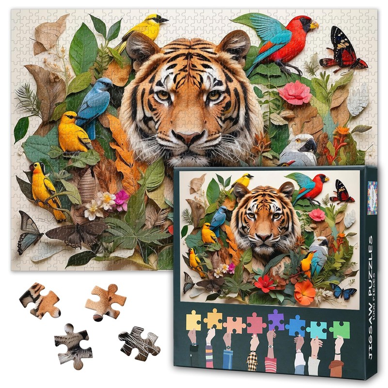 1000 Piece Impossible Hard Difficult Challenging Jigsaw Puzzles Animals Birds and Butterfly Rompecabezas Para Adultos Tiger and Flowers Puzzles for Adults 1000 Pieces 50 x 70 cm