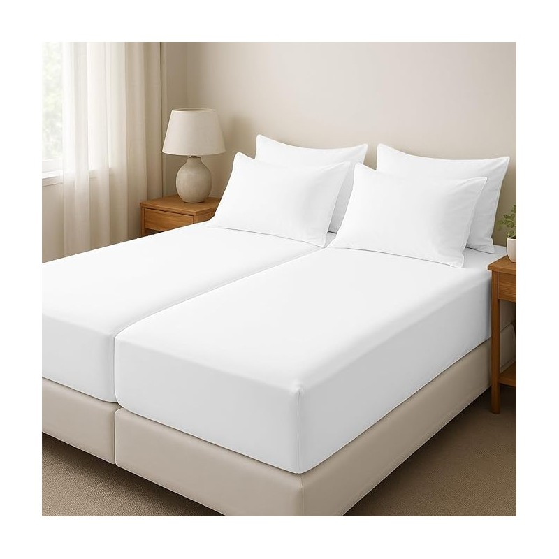 - 5 Piece Split California King Set includes :- 1 Flat sheet measuring (108" X 110") inch 2 Fitted sheets each measuring (36" X 84") inch and 2 Qty Standard pillowcases (20"X40") inch 15" inch Deep Pocket.