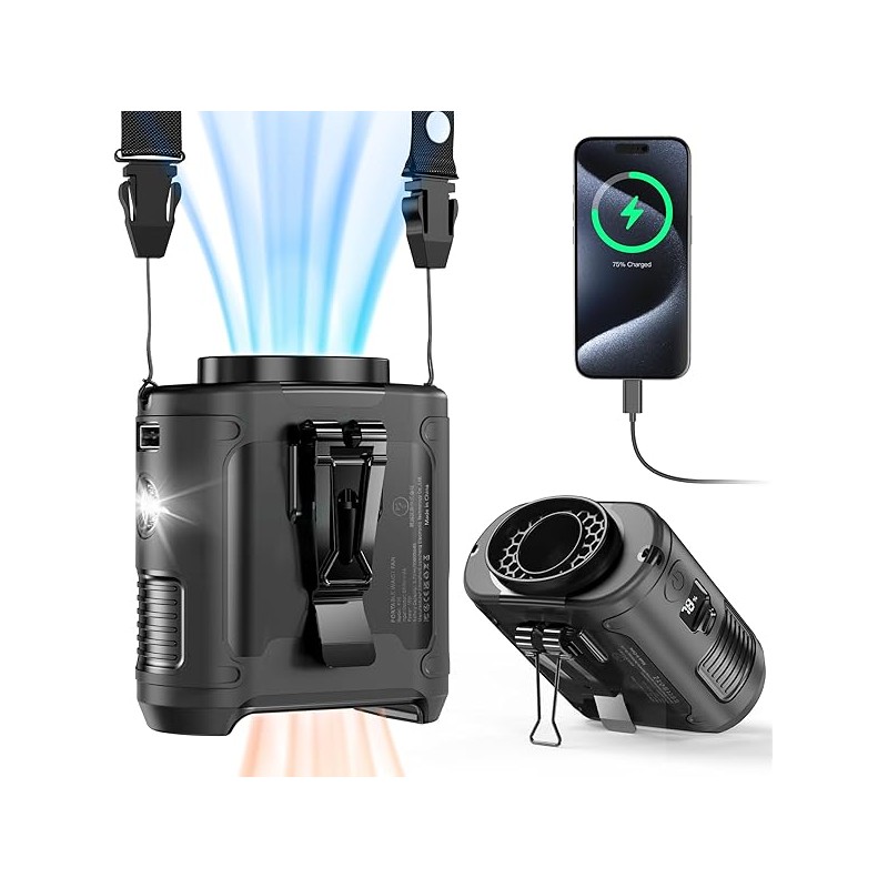 10000mAh Portable Waist Clip Fan,40H Cooling Personal Wearable Fan,5 Speeds 16000RPM Strong Belt Fan,Rechargeable Hands-free Neck Fan With Flashlight for Outdoor Jobsite Camping Traveling (Black)