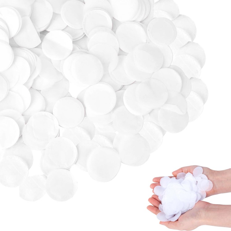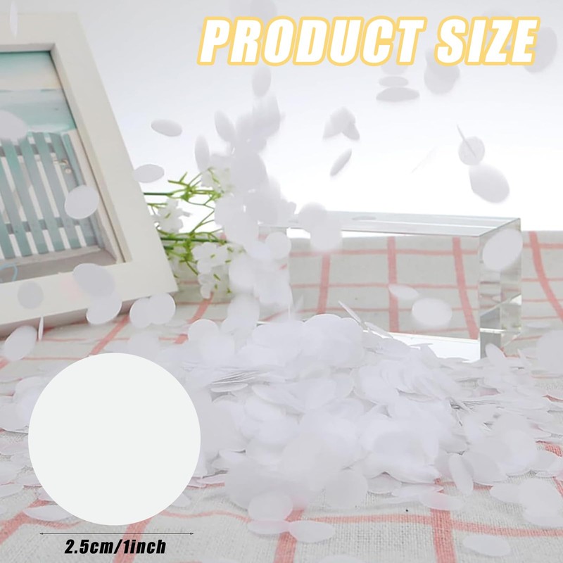 - 1. Product Content: This pack contains 10,000 pieces of white biodegradable confetti in a classic round shape. Perfect for weddings, parties, and celebrations, each piece is lightweight yet durable, ensuring a beautiful scattered effect. The white confetti is made from eco-friendly materials, making it safe for indoor and outdoor use