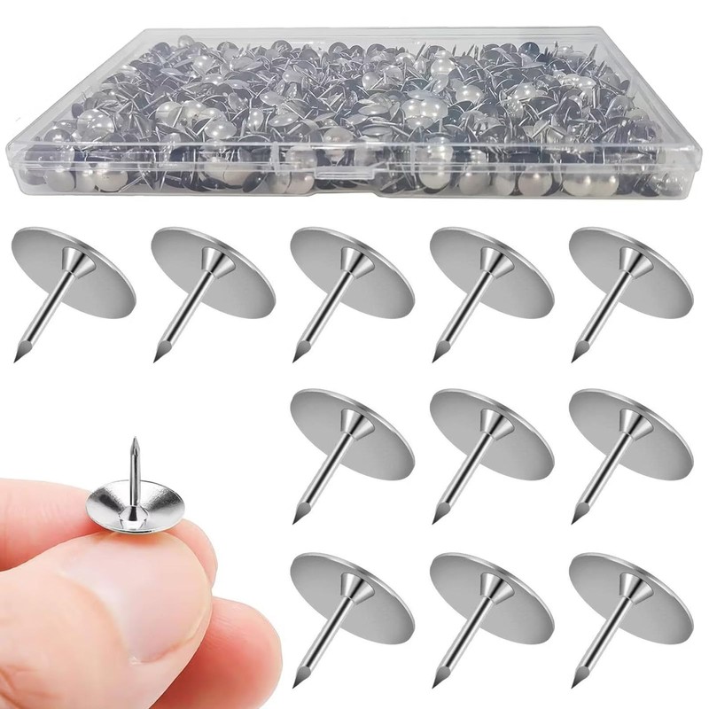 1000pcs Drawing Pins, BetterJonny 9.5mm Silver Push Pins Iron Thumb Tacks Head Nail Pin Doornail for Office or DIY
