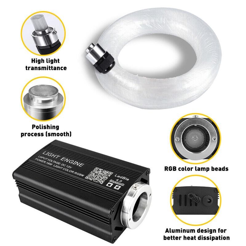 - 1000PCS Fiber Optic Car Home Headliner Star Light Kit, Roof Starlight Ceiling Lights, Color-Changing, App+24 Key Remote Control, Static 16Color And Rgb Light Change, Fade, Jump, Spark, Mode Speed Sensitivity Adjustment, Interior Led Vehicle