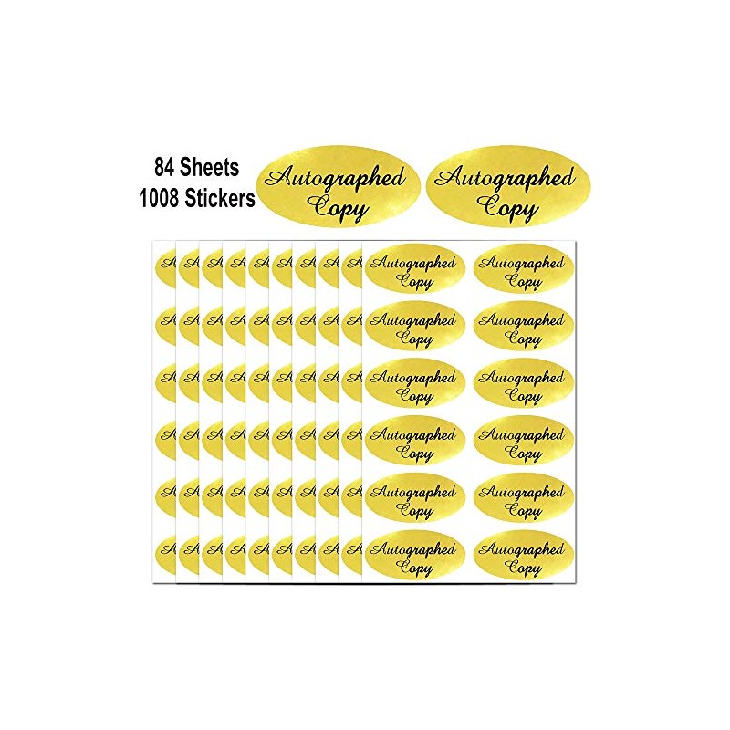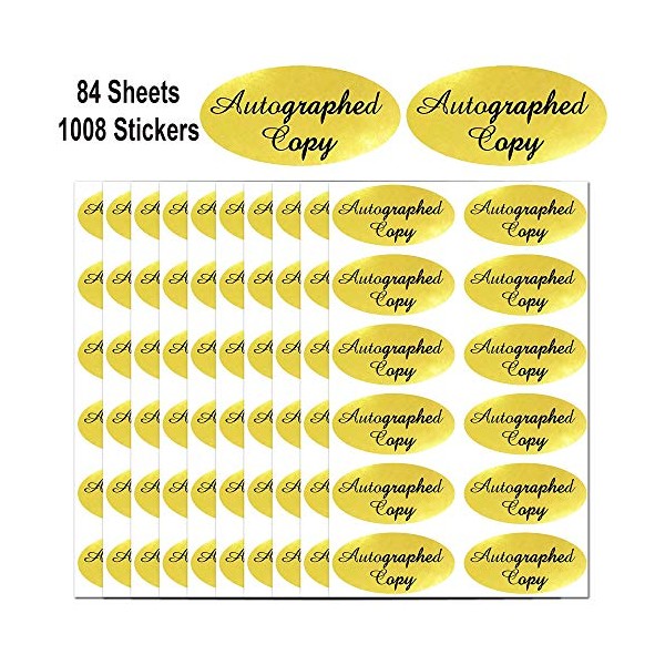 1008 PCS 'Autographed Copy' Stickers - 1 x 2 Inch Oval Gold Foil Labels Gold Foil Autographed Sticker Autographed by The Author Stickers for Paperback Books Novels