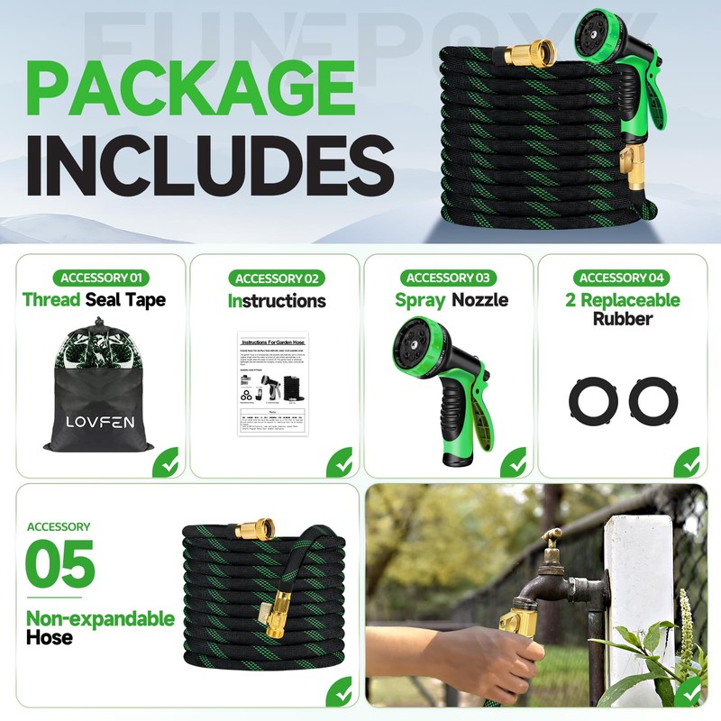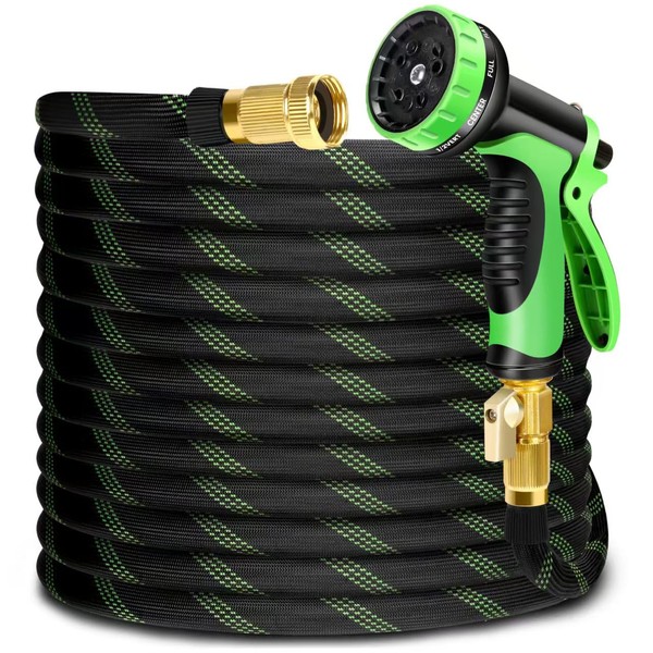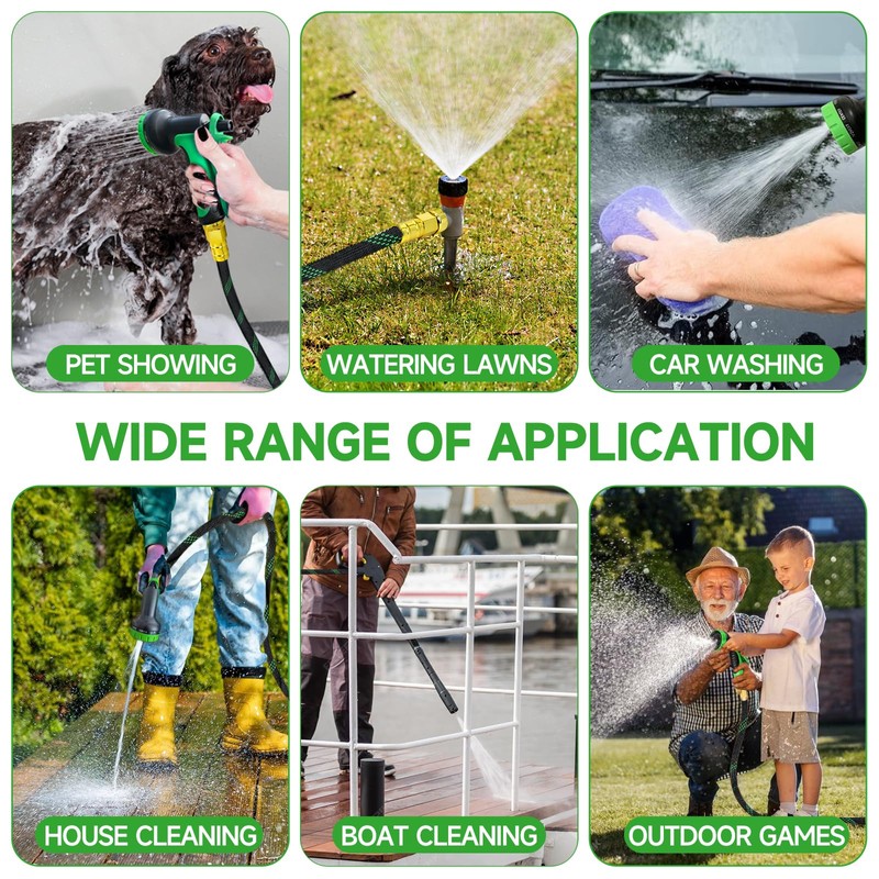 • 【10 Functional Nozzles】The included spray nozzle features 10 functional spray patterns to suit every task—whether you're rinsing the car, watering your lawn, cleaning the patio, or bathing pets. This water hose with spray nozzle offers excellent control, comfort, and versatility, making it a must-have tool for your yard or garden.