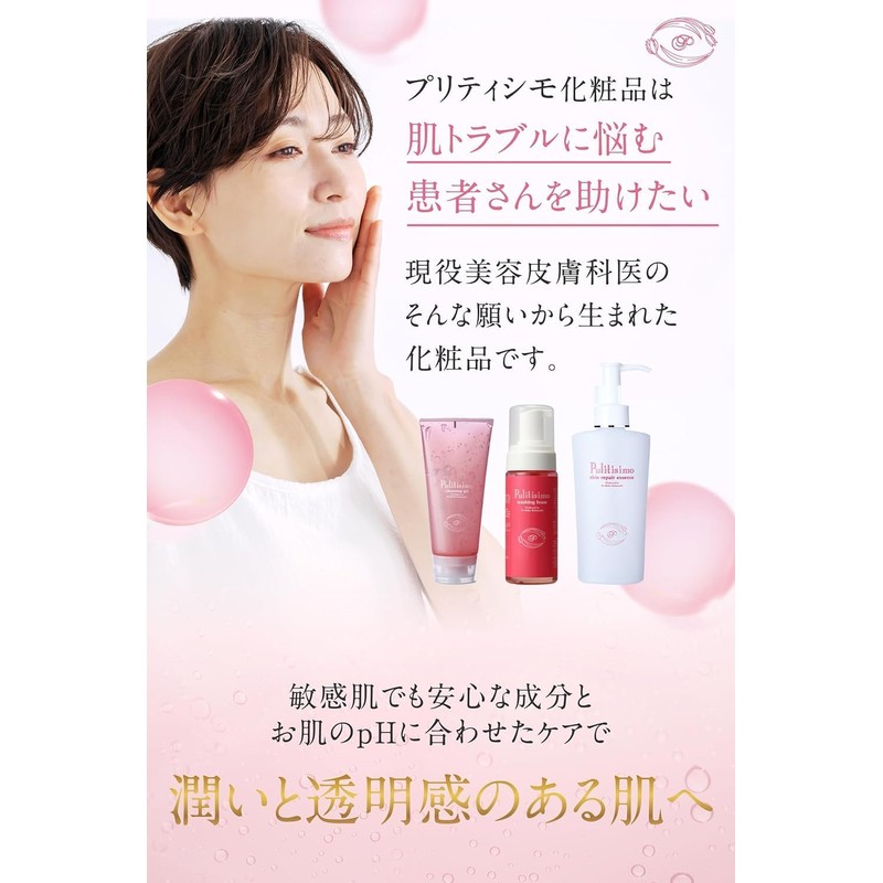 - ✅【使いやすい!】プリティシモの化粧水はジェルタイプなのに伸びが良く、お肌の奥まで成分が浸透し、お肌に潤いを与えます。