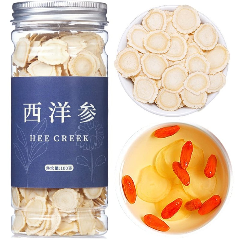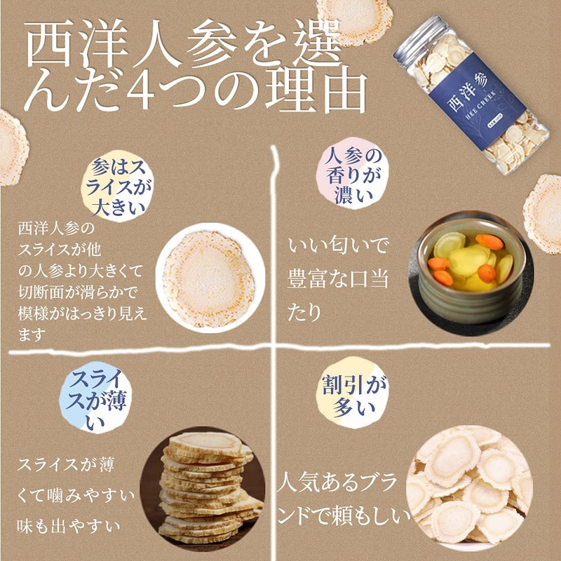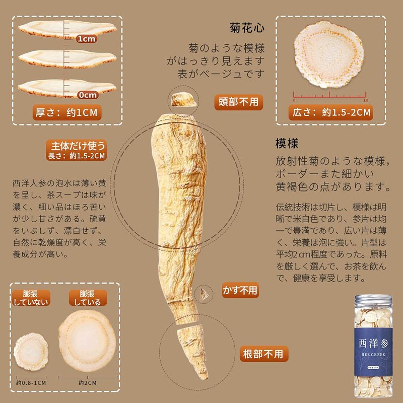 煕渓 西洋人参 花旗参100g 人蔘大片直径2cm 人参茶 特級花旗參含片 西洋参切片 養生茶 薬膳食材 漢方 クコの実、赤いナツメと一緒に飲むことができます 自然栽培 無漂白