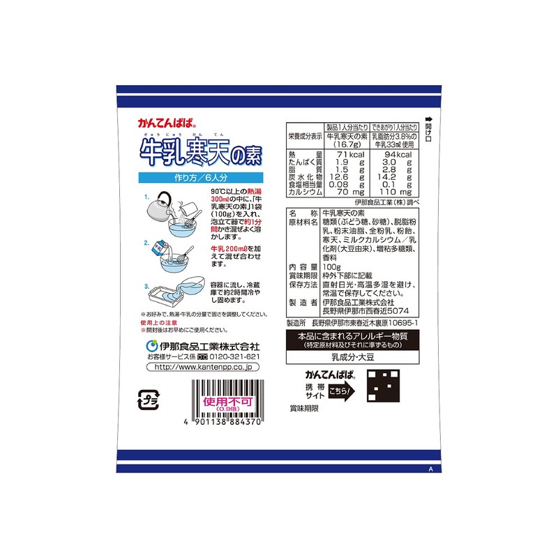 • 原材料:糖類(ぶどう糖(国内製造)、砂糖)、脱脂粉乳、粉末油脂、全粉乳、粉飴、寒天、ミルクカルシウム/乳化剤(大豆由来)、増粘多糖類、香料