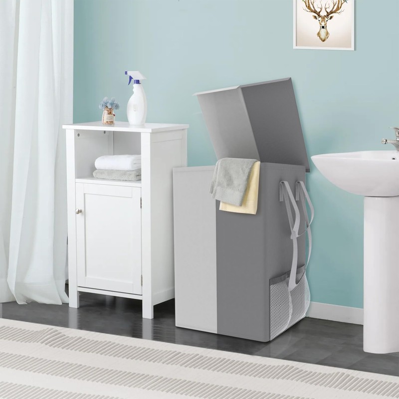 - 【Sorting Before Laundry】 Two different color laundry basket separators allow you to easily sort clothes by color before washing, and two mesh pockets on the side can hold small clothes and detergent.